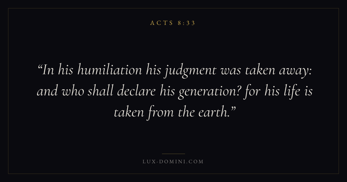 In his humiliation his judgment was taken away: and who shall declare his generation? for his life is taken from the earth.