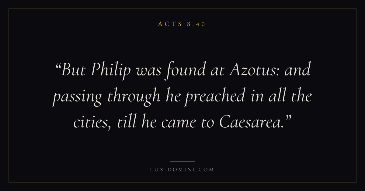 But Philip was found at Azotus: and passing through he preached in all the cities, till he came to Caesarea.