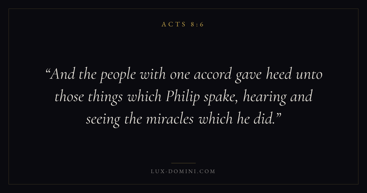 And the people with one accord gave heed unto those things which Philip spake, hearing and seeing the miracles which he did.