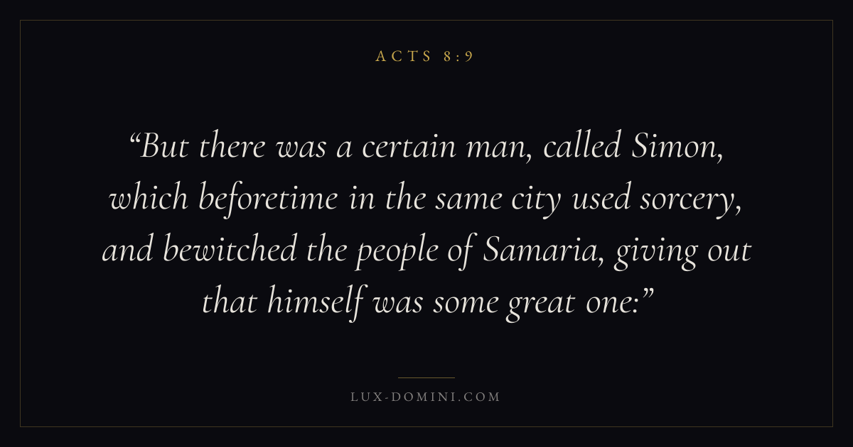 But there was a certain man, called Simon, which beforetime in the same city used sorcery, and bewitched the people of Samaria, giving out that himself was some great one: