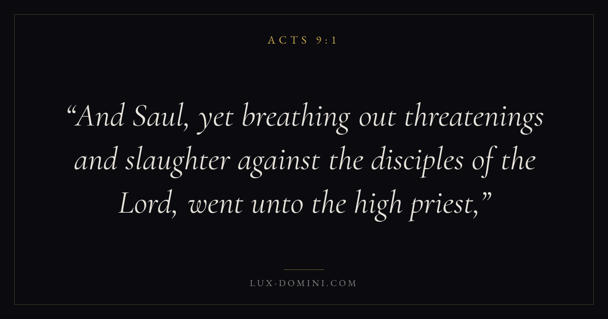 And Saul, yet breathing out threatenings and slaughter against the disciples of the Lord, went unto the high priest,