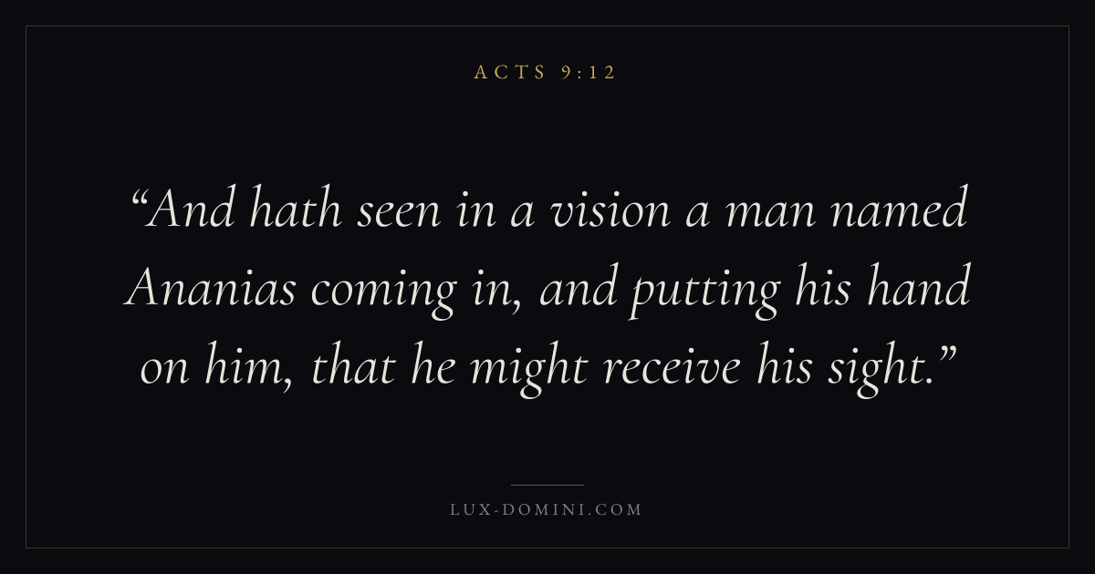 And hath seen in a vision a man named Ananias coming in, and putting his hand on him, that he might receive his sight.