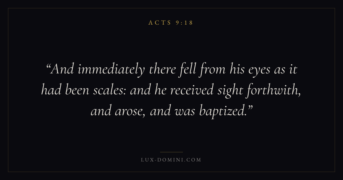 And immediately there fell from his eyes as it had been scales: and he received sight forthwith, and arose, and was baptized.