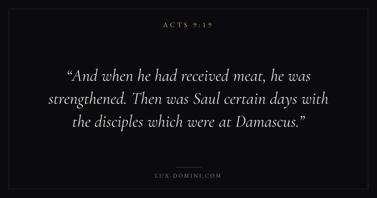 And when he had received meat, he was strengthened. Then was Saul certain days with the disciples which were at Damascus.