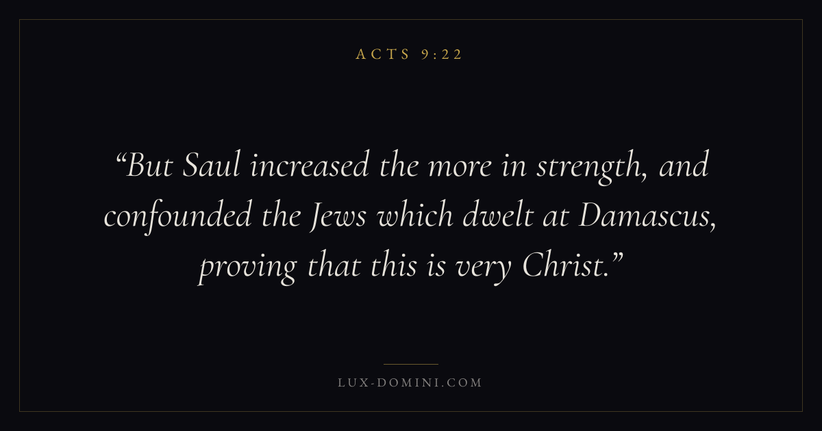 But Saul increased the more in strength, and confounded the Jews which dwelt at Damascus, proving that this is very Christ.
