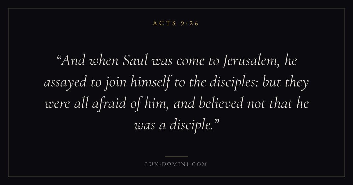 And when Saul was come to Jerusalem, he assayed to join himself to the disciples: but they were all afraid of him, and believed not that he was a disciple.
