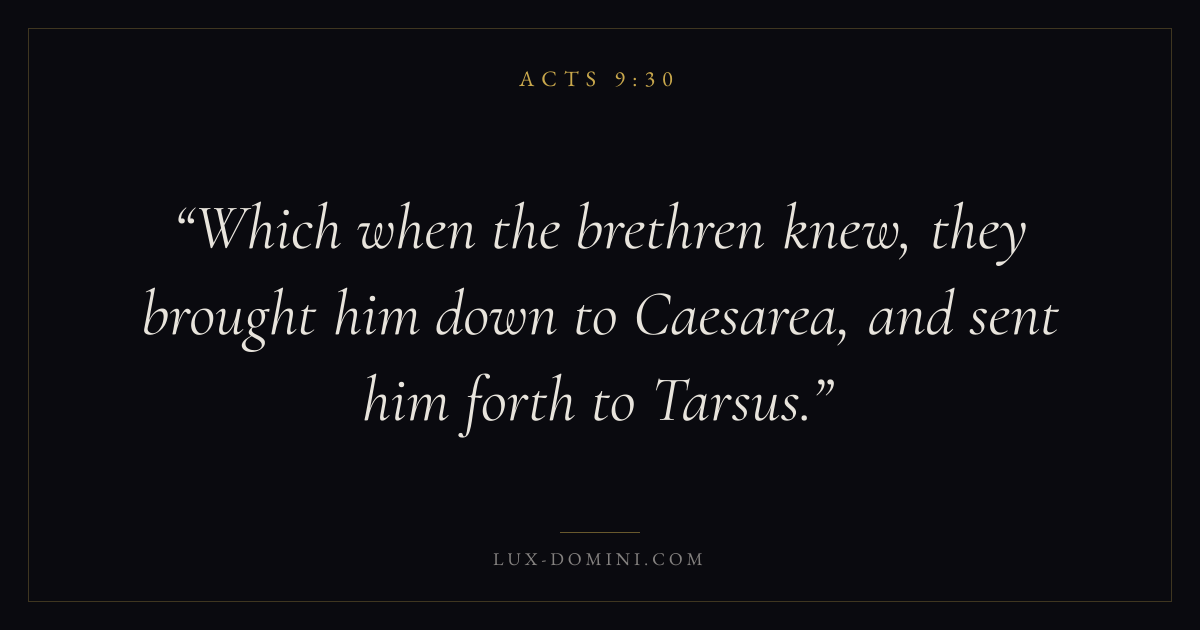 Which when the brethren knew, they brought him down to Caesarea, and sent him forth to Tarsus.