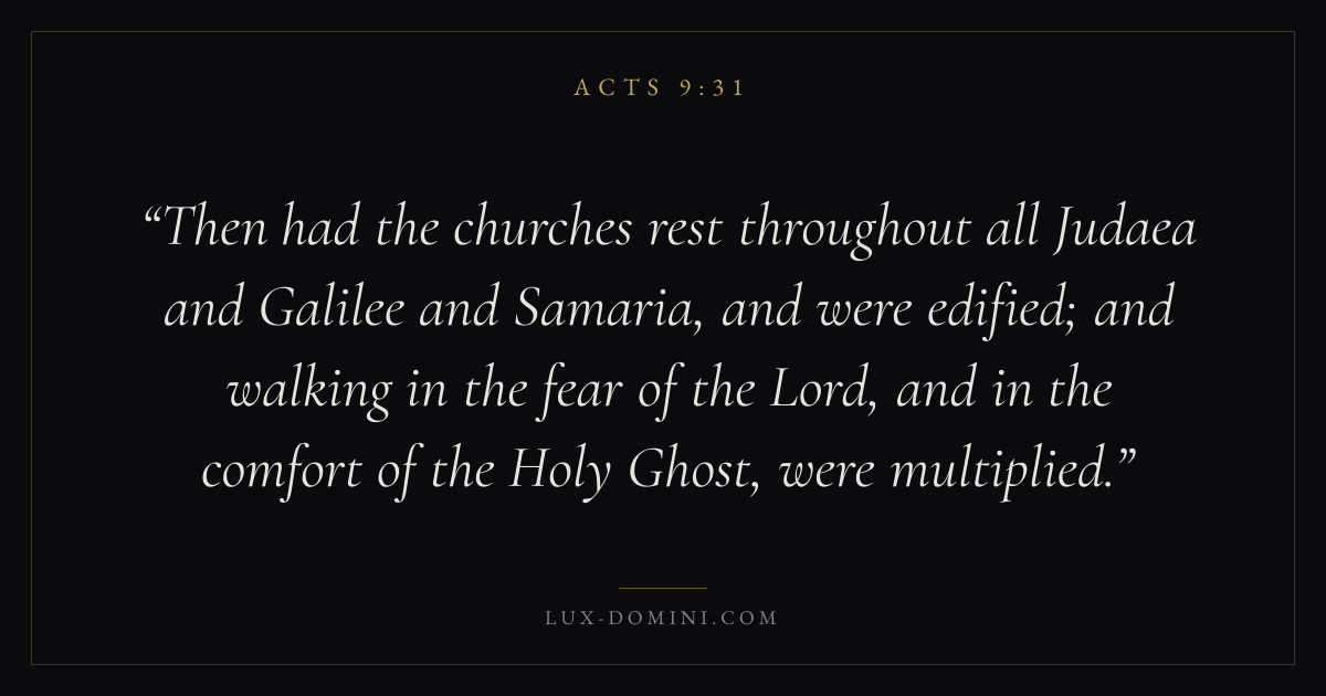 Then had the churches rest throughout all Judaea and Galilee and Samaria, and were edified; and walking in the fear of the Lord, and in the comfort of the Holy Ghost, were multiplied.