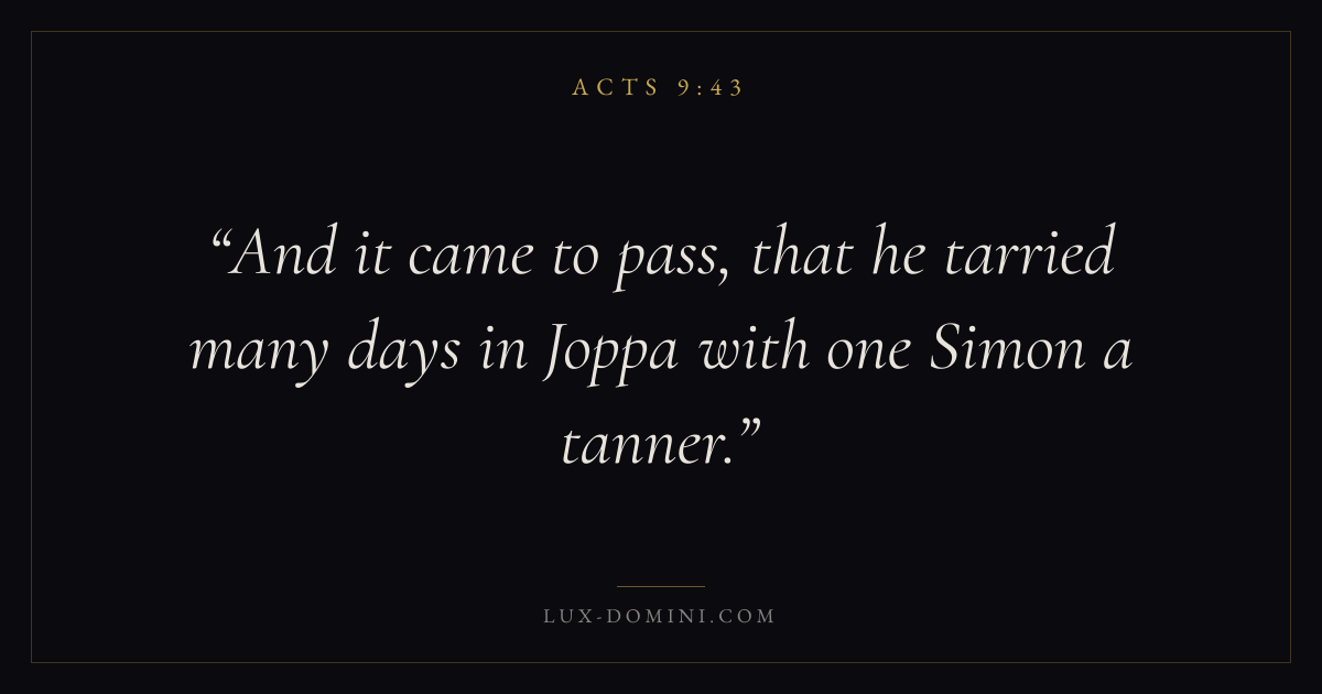 And it came to pass, that he tarried many days in Joppa with one Simon a tanner.