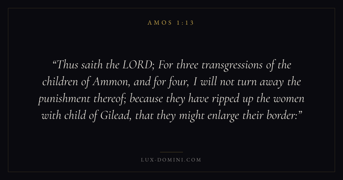 Thus saith the LORD; For three transgressions of the children of Ammon, and for four, I will not turn away the punishment thereof; because they have ripped up the women with child of Gilead, that they might enlarge their border: