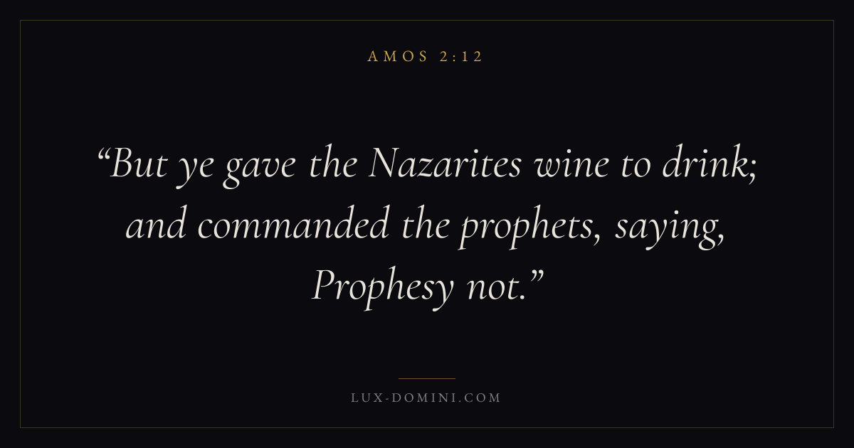 But ye gave the Nazarites wine to drink; and commanded the prophets, saying, Prophesy not.