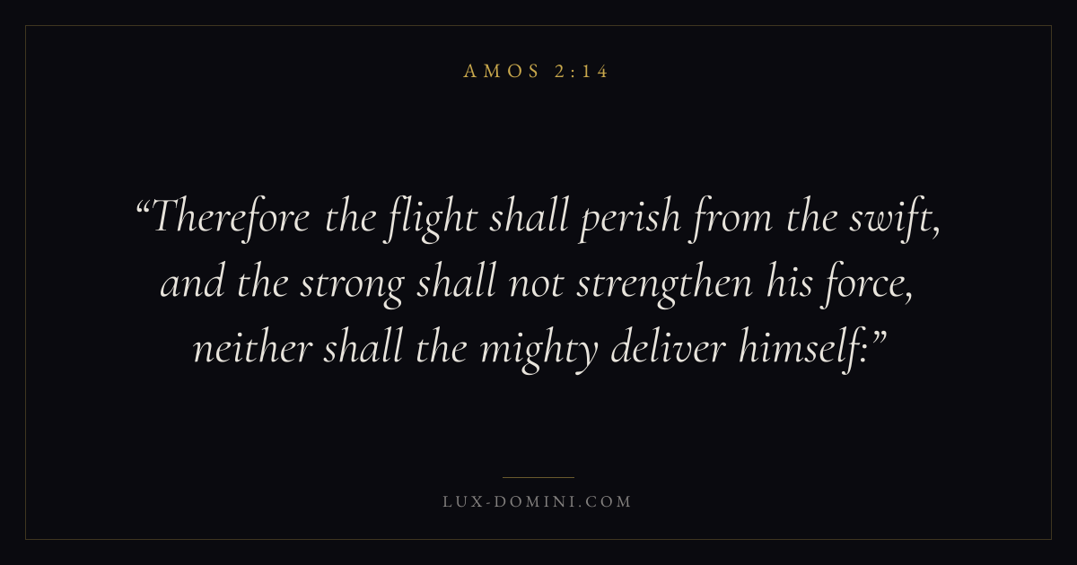 Therefore the flight shall perish from the swift, and the strong shall not strengthen his force, neither shall the mighty deliver himself:
