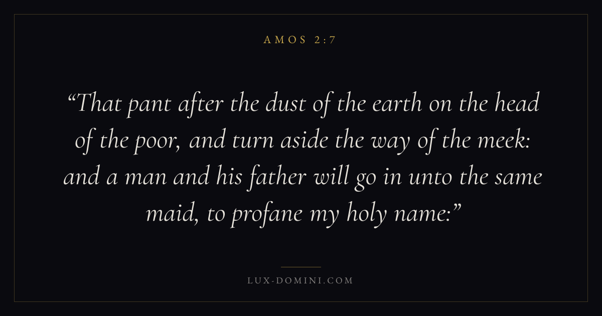 That pant after the dust of the earth on the head of the poor, and turn aside the way of the meek: and a man and his father will go in unto the same maid, to profane my holy name: