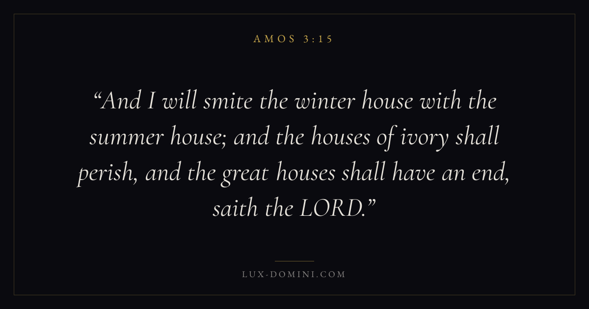 And I will smite the winter house with the summer house; and the houses of ivory shall perish, and the great houses shall have an end, saith the LORD.