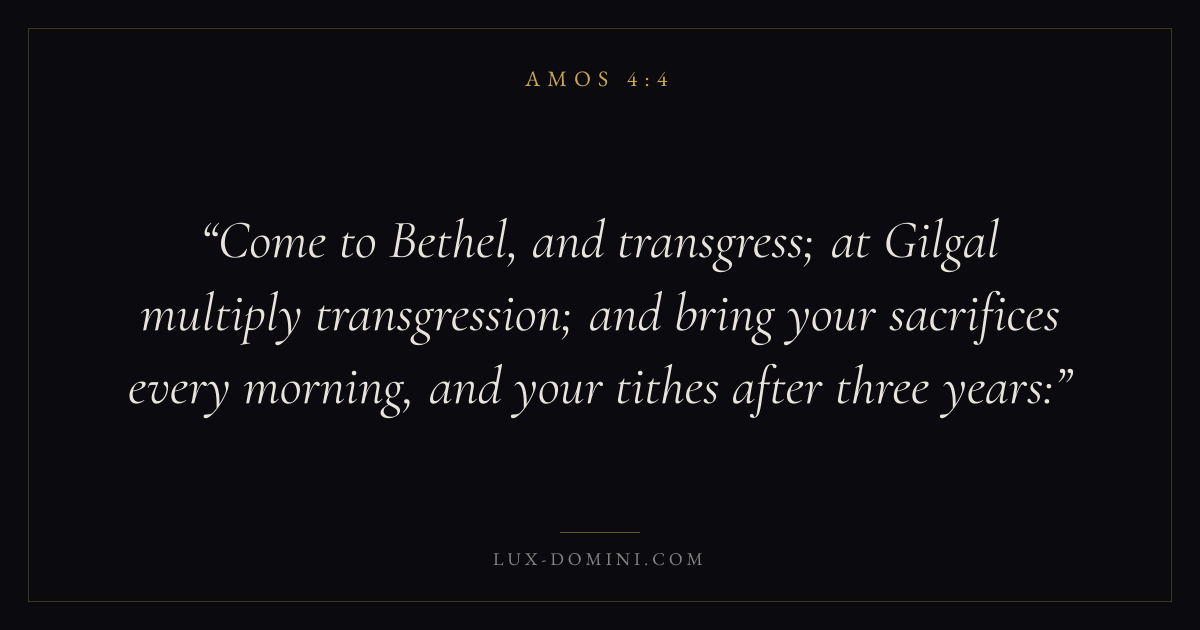 Come to Bethel, and transgress; at Gilgal multiply transgression; and bring your sacrifices every morning, and your tithes after three years: