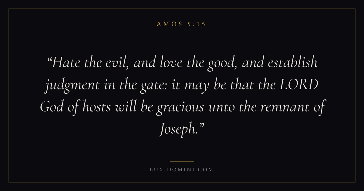 Hate the evil, and love the good, and establish judgment in the gate: it may be that the LORD God of hosts will be gracious unto the remnant of Joseph.