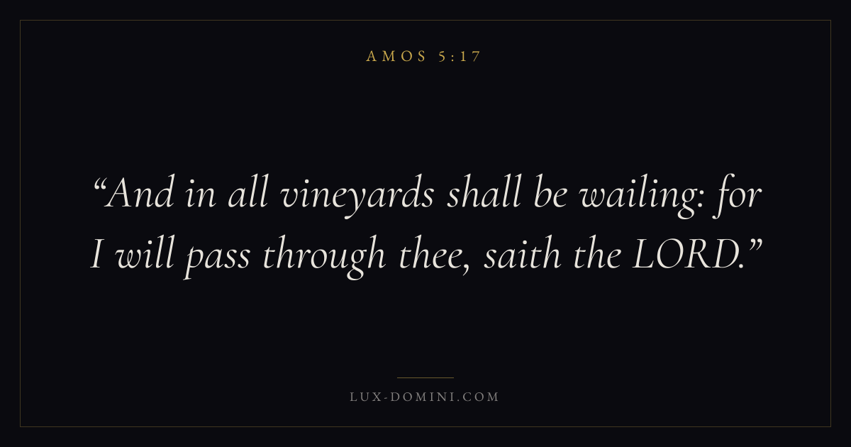 And in all vineyards shall be wailing: for I will pass through thee, saith the LORD.