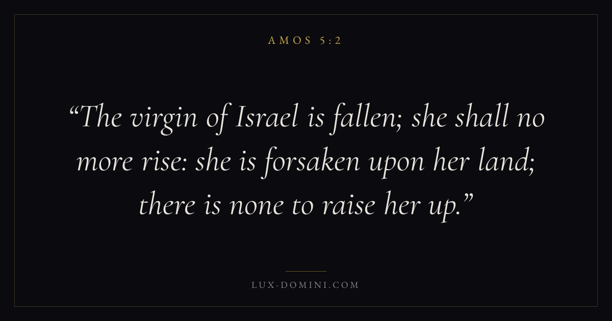 The virgin of Israel is fallen; she shall no more rise: she is forsaken upon her land; there is none to raise her up.