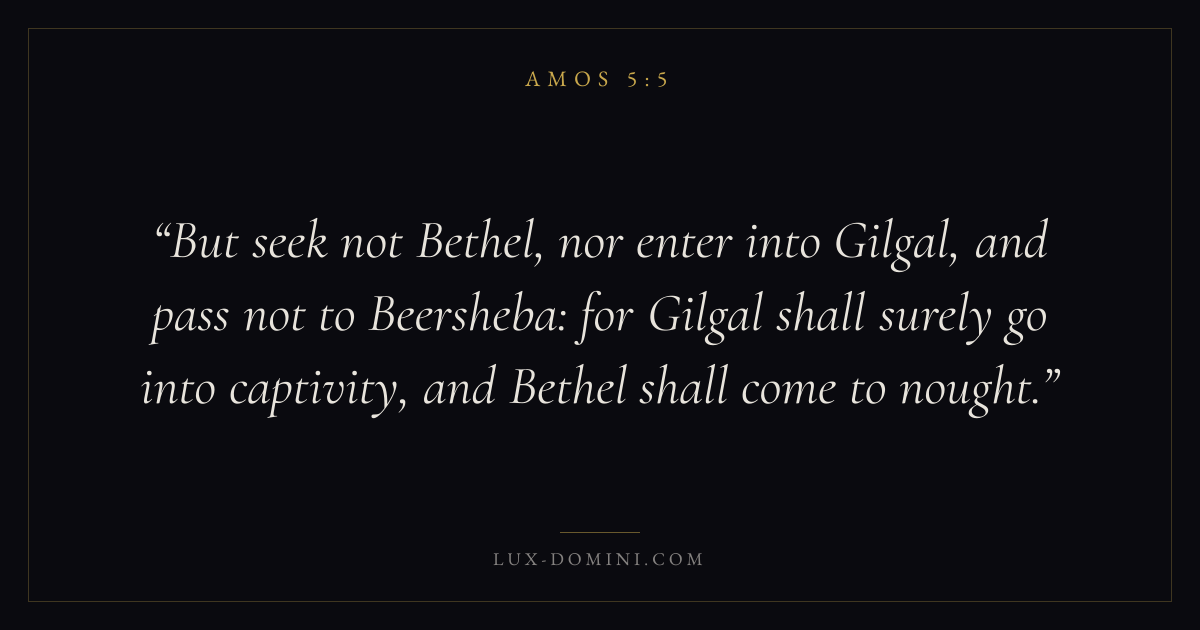 But seek not Bethel, nor enter into Gilgal, and pass not to Beersheba: for Gilgal shall surely go into captivity, and Bethel shall come to nought.
