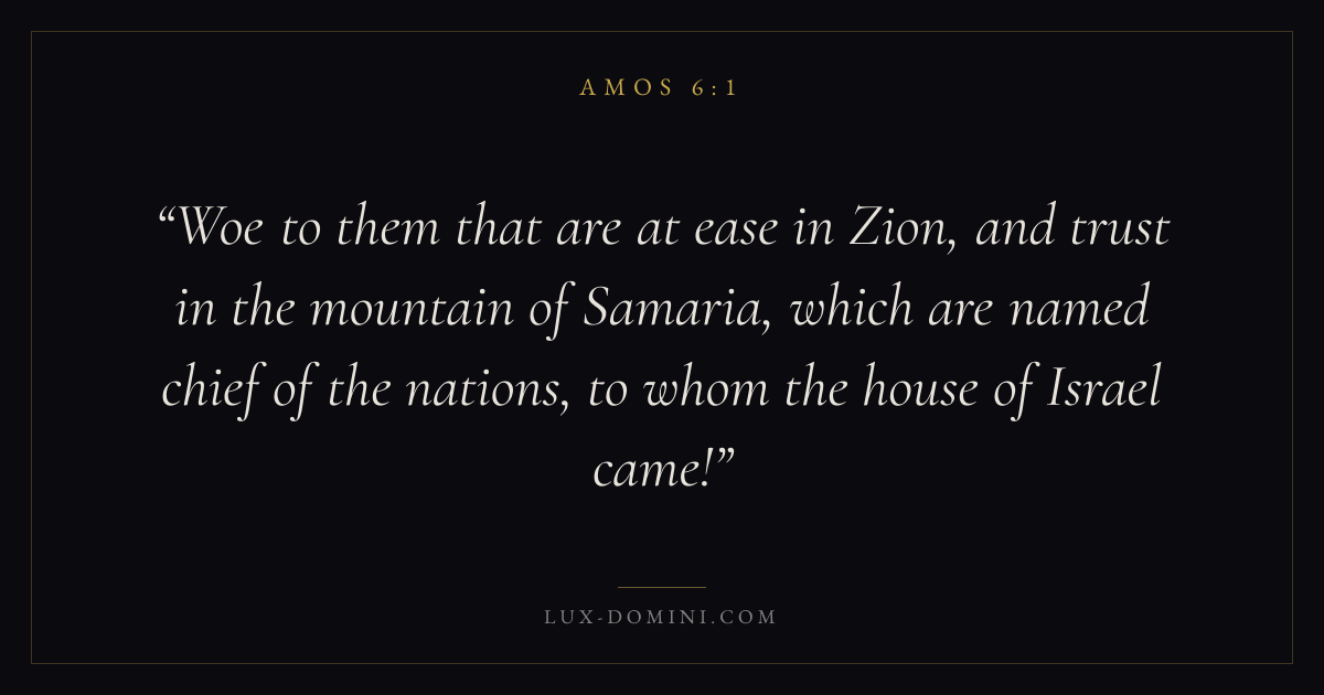 Woe to them that are at ease in Zion, and trust in the mountain of Samaria, which are named chief of the nations, to whom the house of Israel came!