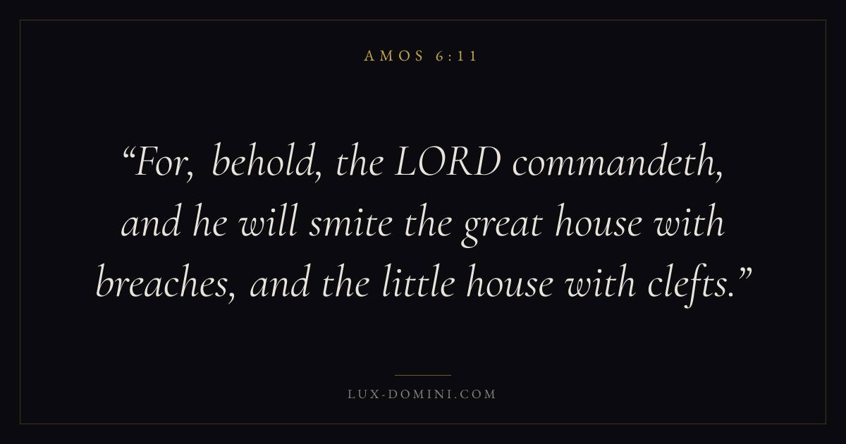 For, behold, the LORD commandeth, and he will smite the great house with breaches, and the little house with clefts.