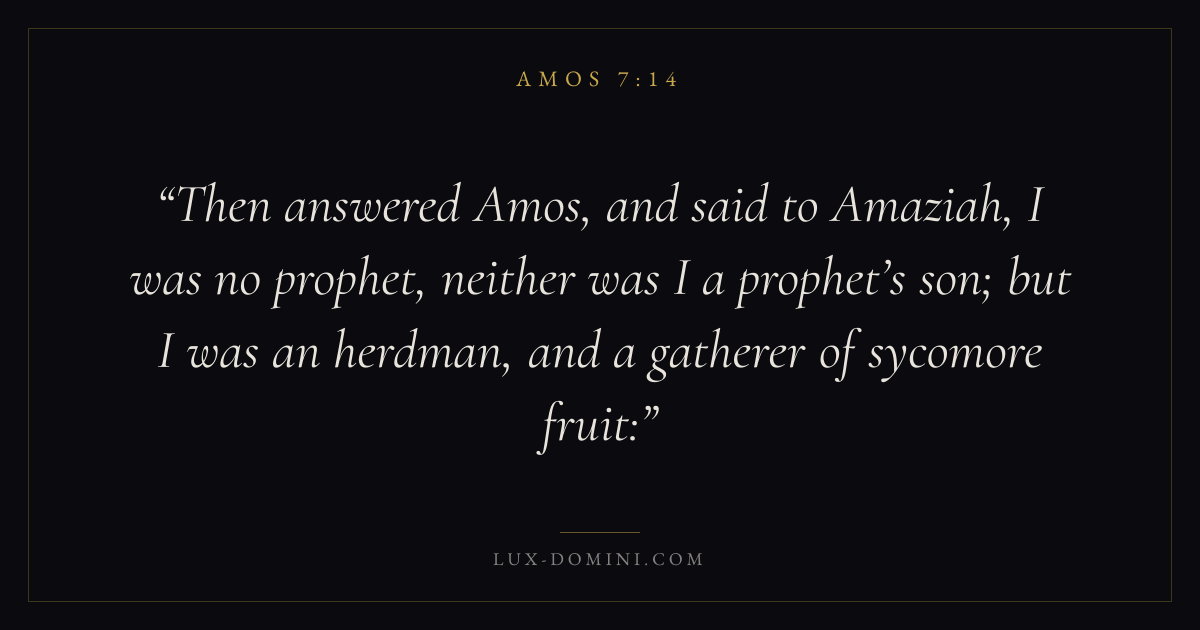 Then answered Amos, and said to Amaziah, I was no prophet, neither was I a prophet’s son; but I was an herdman, and a gatherer of sycomore fruit: