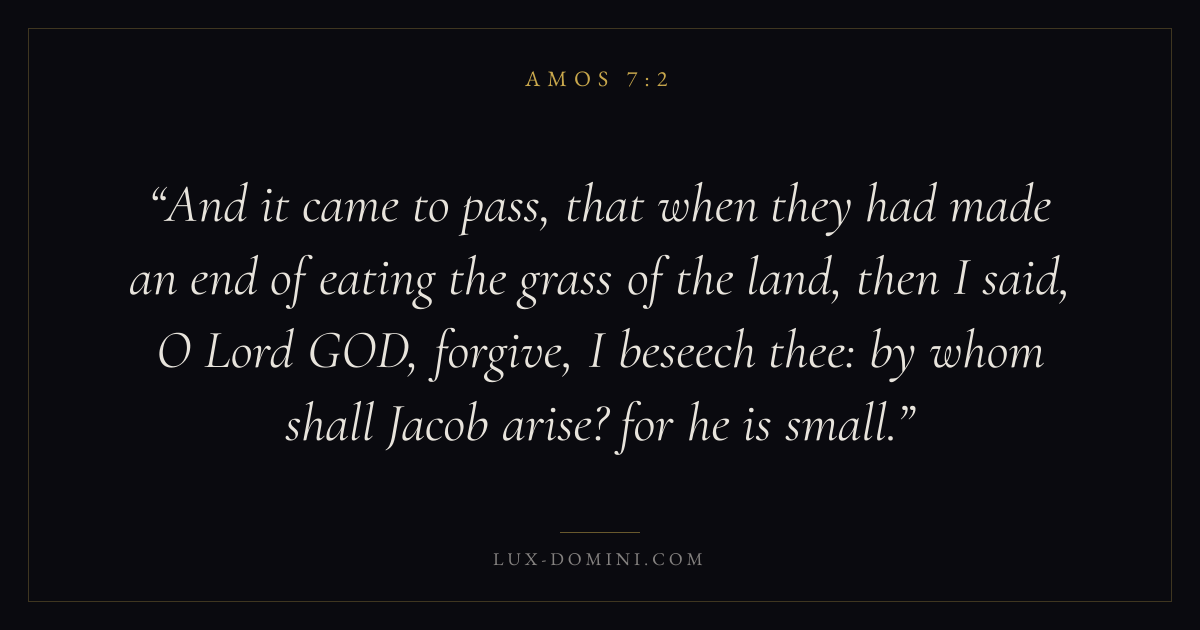 And it came to pass, that when they had made an end of eating the grass of the land, then I said, O Lord GOD, forgive, I beseech thee: by whom shall Jacob arise? for he is small.