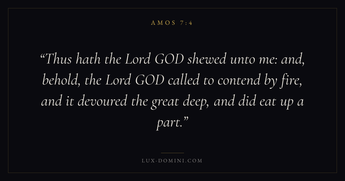 Thus hath the Lord GOD shewed unto me: and, behold, the Lord GOD called to contend by fire, and it devoured the great deep, and did eat up a part.