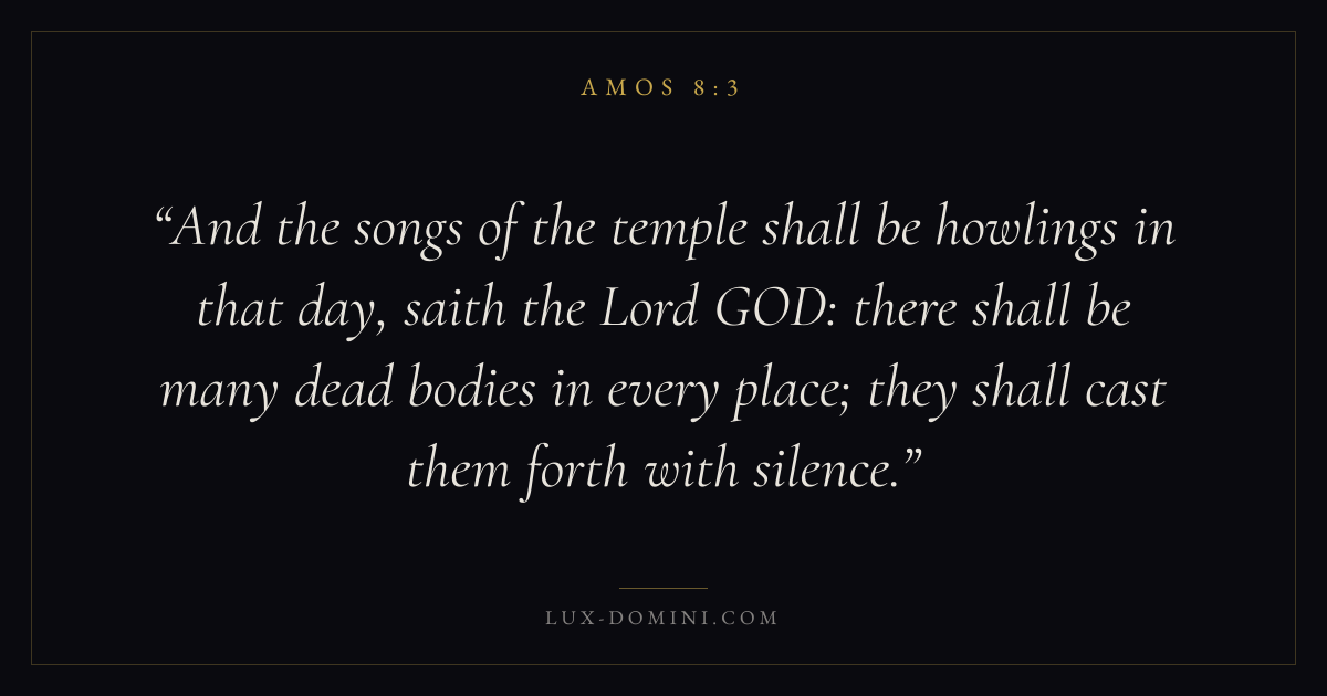 And the songs of the temple shall be howlings in that day, saith the Lord GOD: there shall be many dead bodies in every place; they shall cast them forth with silence.