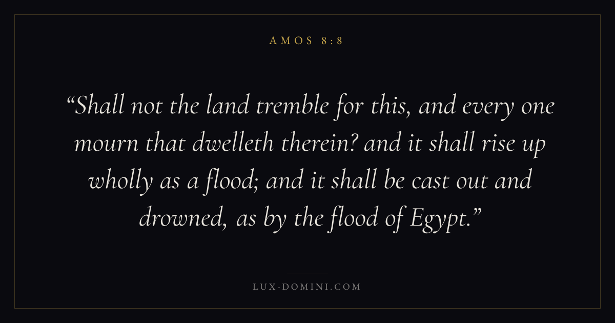Shall not the land tremble for this, and every one mourn that dwelleth therein? and it shall rise up wholly as a flood; and it shall be cast out and drowned, as by the flood of Egypt.