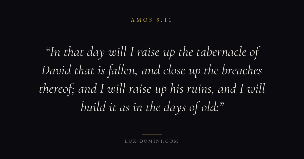 In that day will I raise up the tabernacle of David that is fallen, and close up the breaches thereof; and I will raise up his ruins, and I will build it as in the days of old: