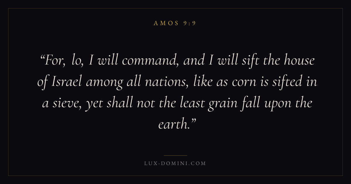 For, lo, I will command, and I will sift the house of Israel among all nations, like as corn is sifted in a sieve, yet shall not the least grain fall upon the earth.