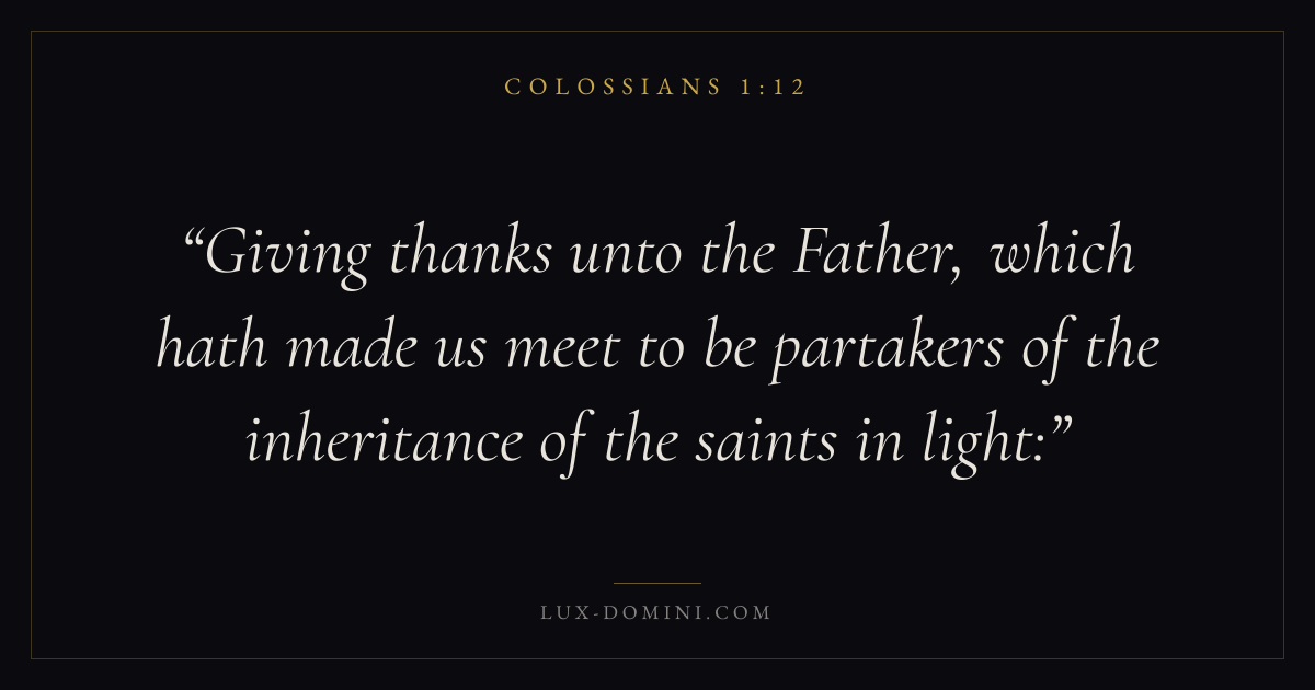 Giving thanks unto the Father, which hath made us meet to be partakers of the inheritance of the saints in light: