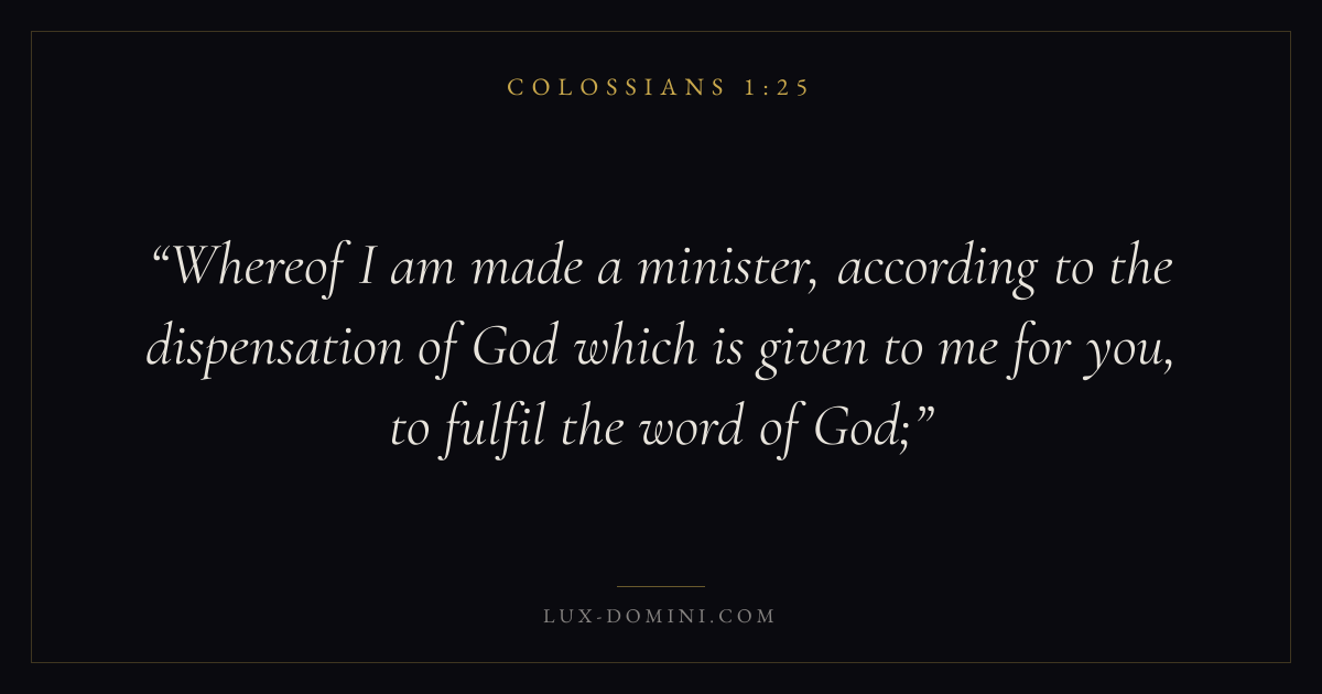 Whereof I am made a minister, according to the dispensation of God which is given to me for you, to fulfil the word of God;
