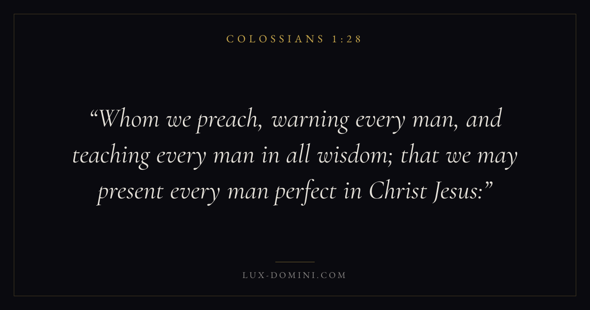 Whom we preach, warning every man, and teaching every man in all wisdom; that we may present every man perfect in Christ Jesus: