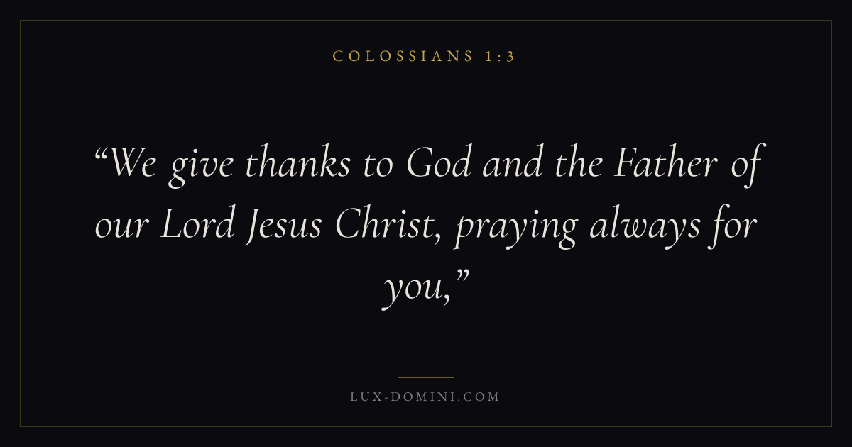We give thanks to God and the Father of our Lord Jesus Christ, praying always for you,