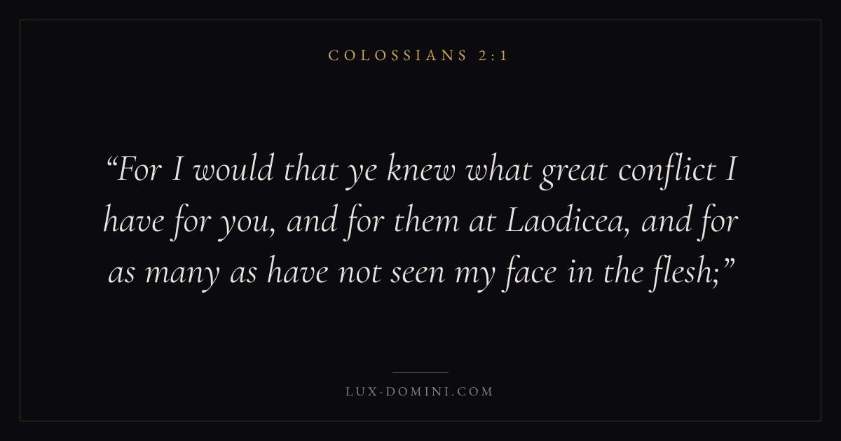 For I would that ye knew what great conflict I have for you, and for them at Laodicea, and for as many as have not seen my face in the flesh;