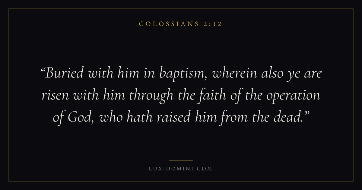 Buried with him in baptism, wherein also ye are risen with him through the faith of the operation of God, who hath raised him from the dead.
