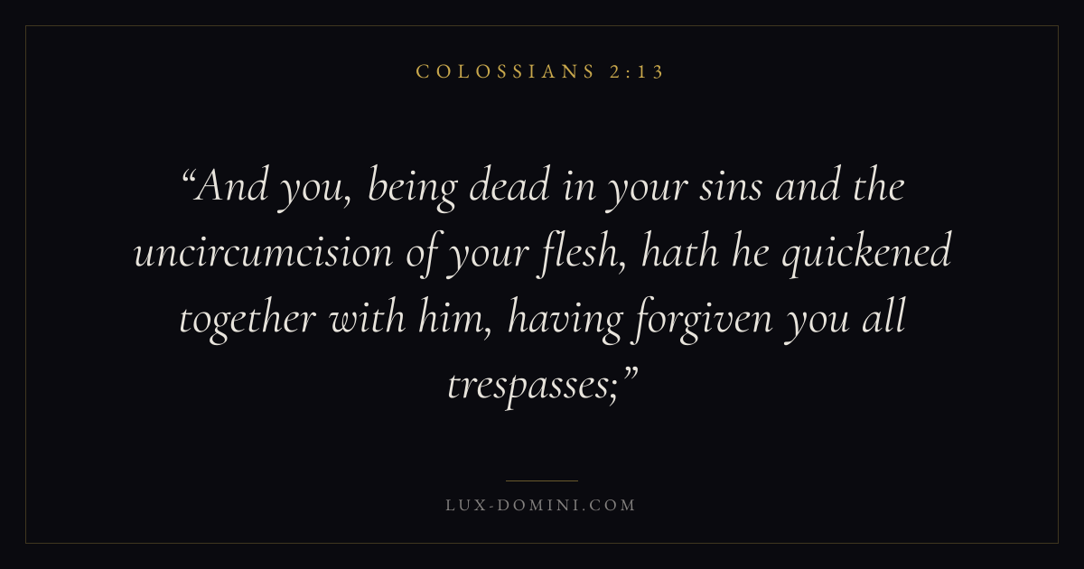 And you, being dead in your sins and the uncircumcision of your flesh, hath he quickened together with him, having forgiven you all trespasses;