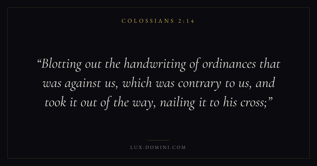 Blotting out the handwriting of ordinances that was against us, which was contrary to us, and took it out of the way, nailing it to his cross;