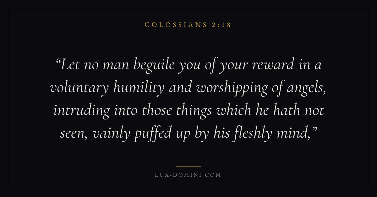 Let no man beguile you of your reward in a voluntary humility and worshipping of angels, intruding into those things which he hath not seen, vainly puffed up by his fleshly mind,