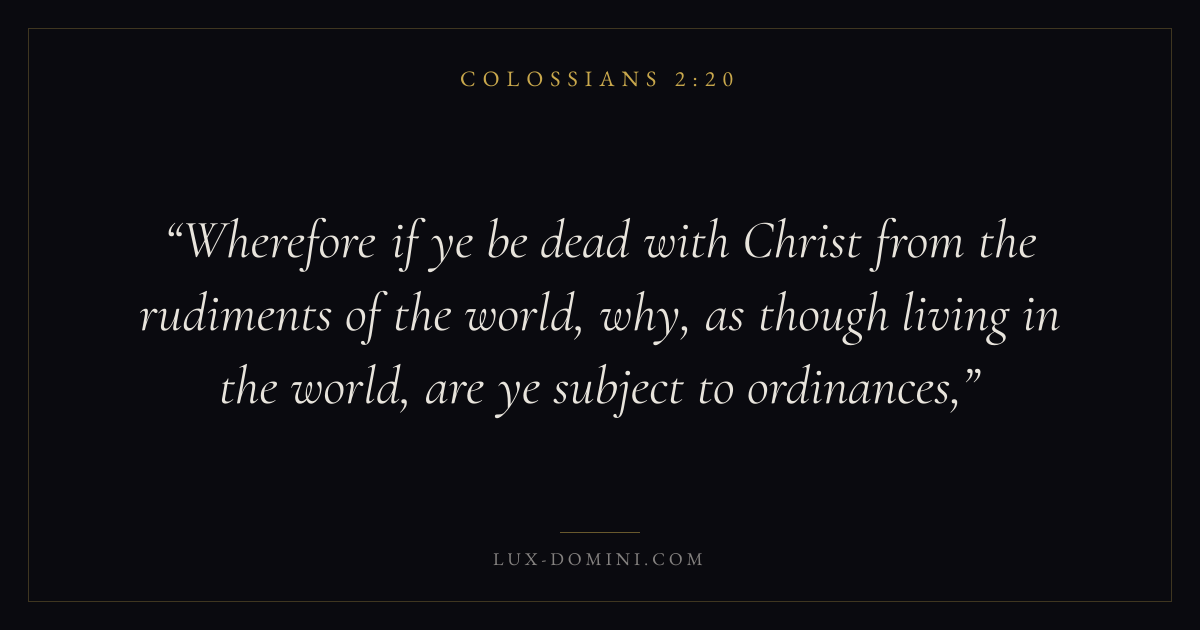 Wherefore if ye be dead with Christ from the rudiments of the world, why, as though living in the world, are ye subject to ordinances,