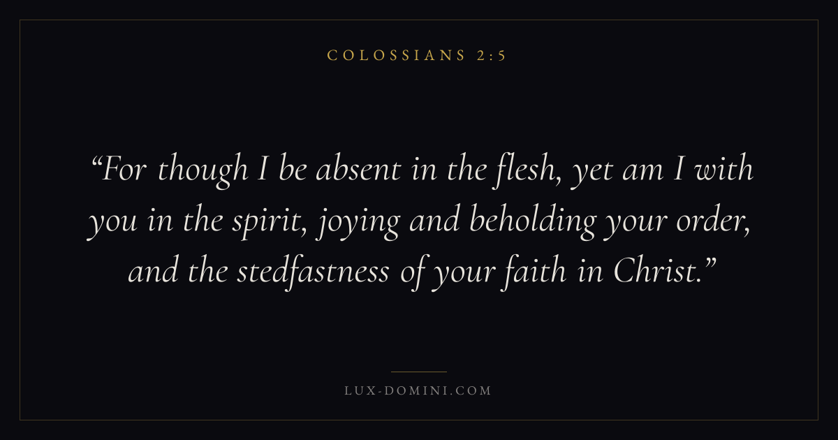 For though I be absent in the flesh, yet am I with you in the spirit, joying and beholding your order, and the stedfastness of your faith in Christ.