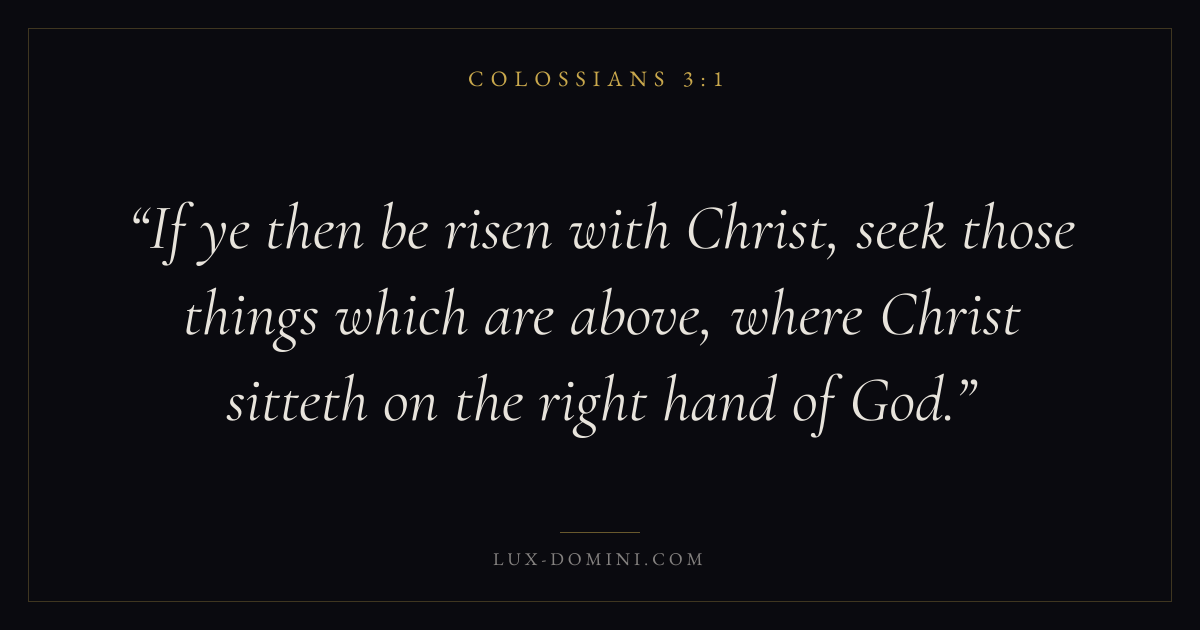 If ye then be risen with Christ, seek those things which are above, where Christ sitteth on the right hand of God.
