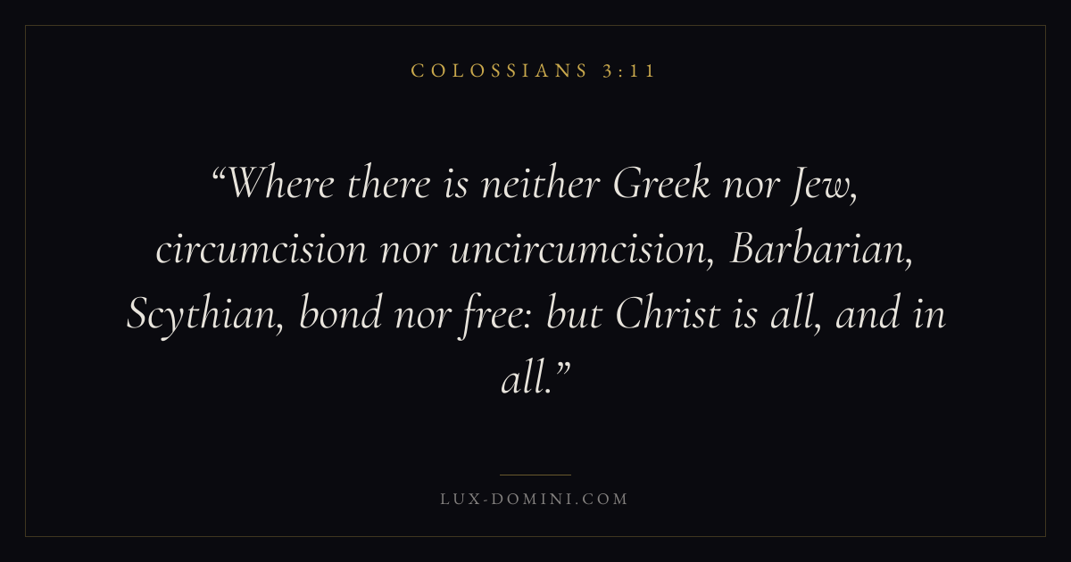 Where there is neither Greek nor Jew, circumcision nor uncircumcision, Barbarian, Scythian, bond nor free: but Christ is all, and in all.
