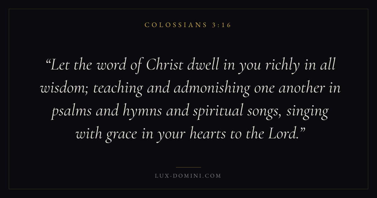 Let the word of Christ dwell in you richly in all wisdom; teaching and admonishing one another in psalms and hymns and spiritual songs, singing with grace in your hearts to the Lord.