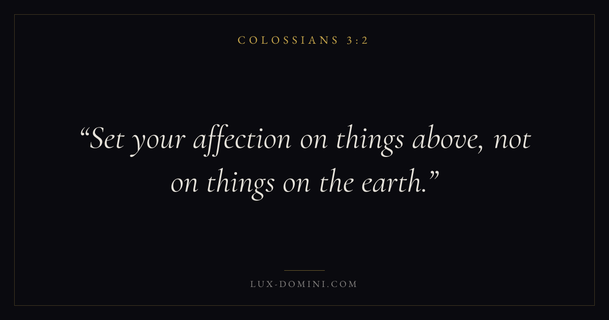 Set your affection - Margin, "or mind." Greek" think of" - φρονειτε phroneite. The thoughts should be occupied about the things where Christ now dwells, where our final home is to be, where our great interests are. Since we are raised from the death of sin, and are made to live anew, the great object of our contemplation should be the heavenly world. Not on things on the earth - Wealth, honor, pleasure. Our affections should not be fixed on houses and lands; on scenes of fashion and gaiety; on low and debasing enjoyments.
