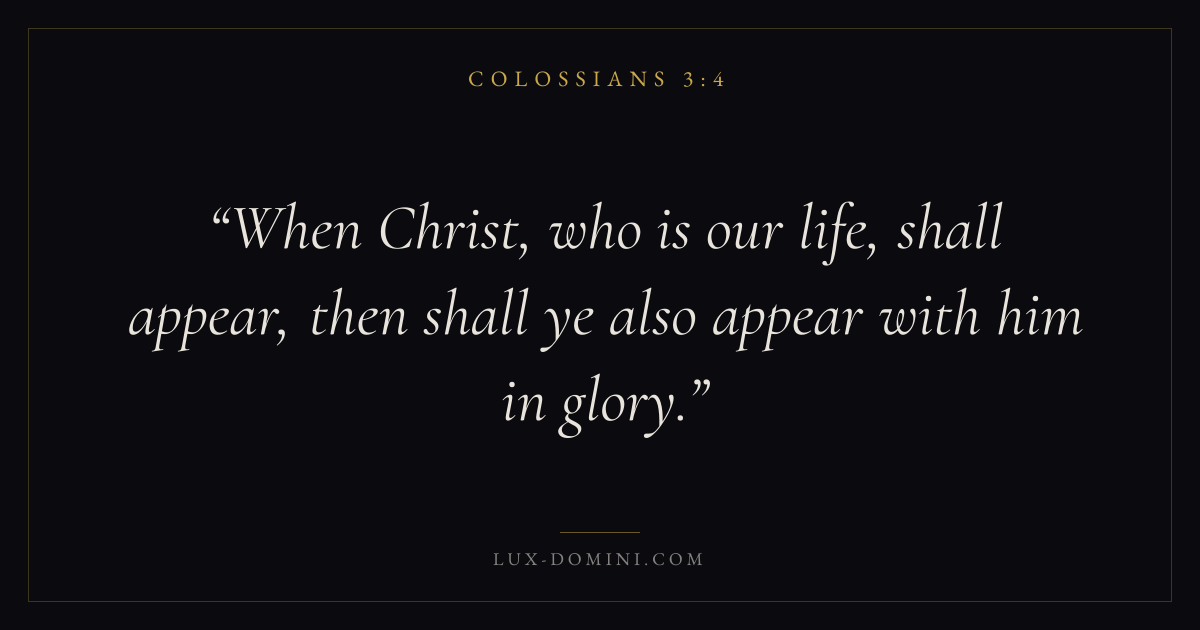 When Christ, who is our life, shall appear, then shall ye also appear with him in glory.