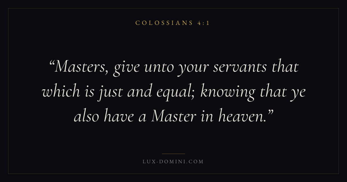 Masters, give unto your servants that which is just and equal; knowing that ye also have a Master in heaven.