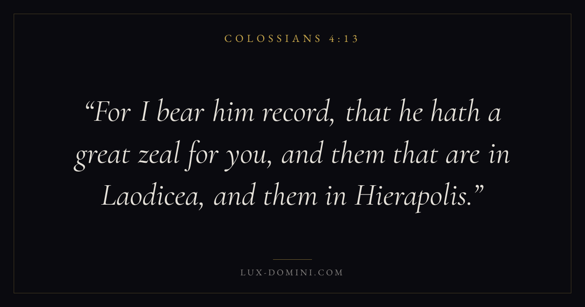 For I bear him record, that he hath a great zeal for you, and them that are in Laodicea, and them in Hierapolis.